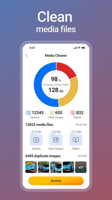 1、搜索相机中的照片,并使用多种图形比较算法来查找重复或相似的照片,从而方便您管理相机照片并节省手机上的存储空间。