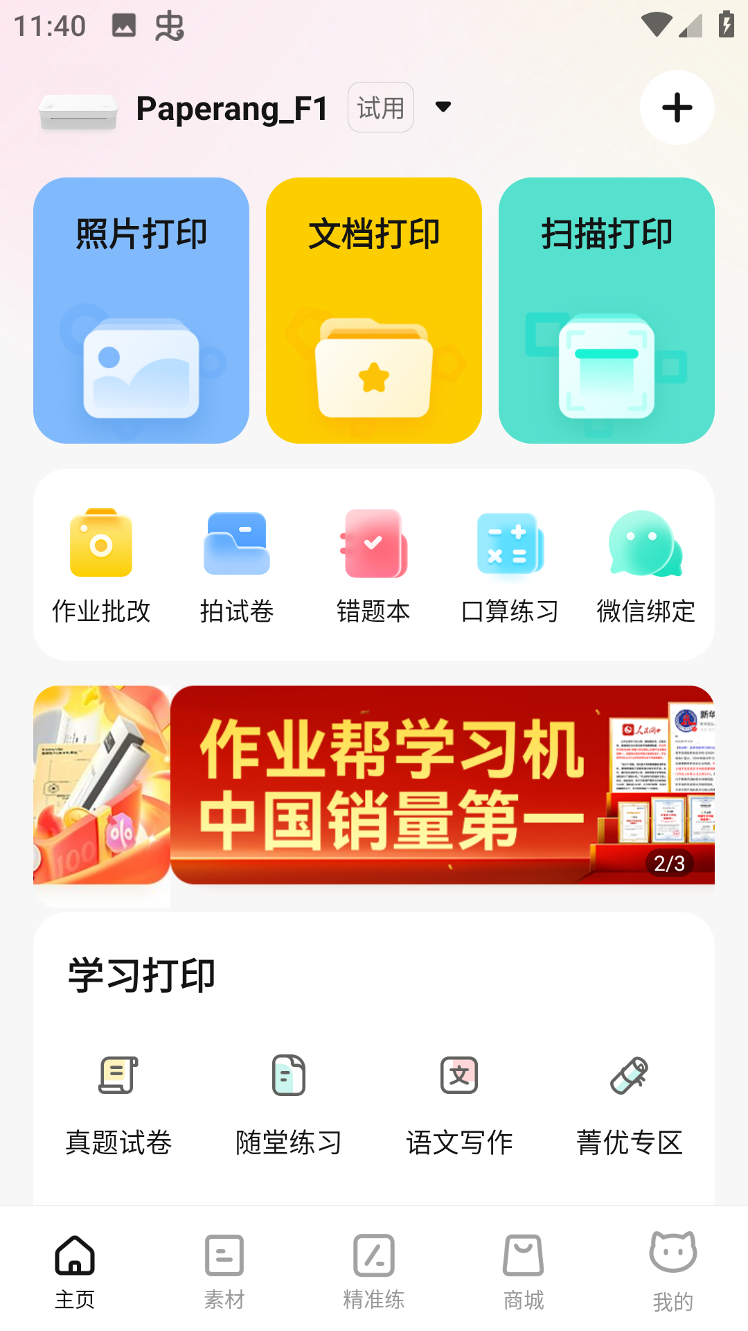 1、在本站下载作业帮喵喵机app,打开后点击【我的】,找到【打印机使用教程】进入;