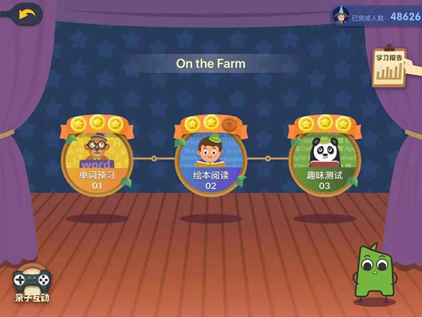 1、学习互动,孩子可以通过互动版块,和家长英语对战游戏;