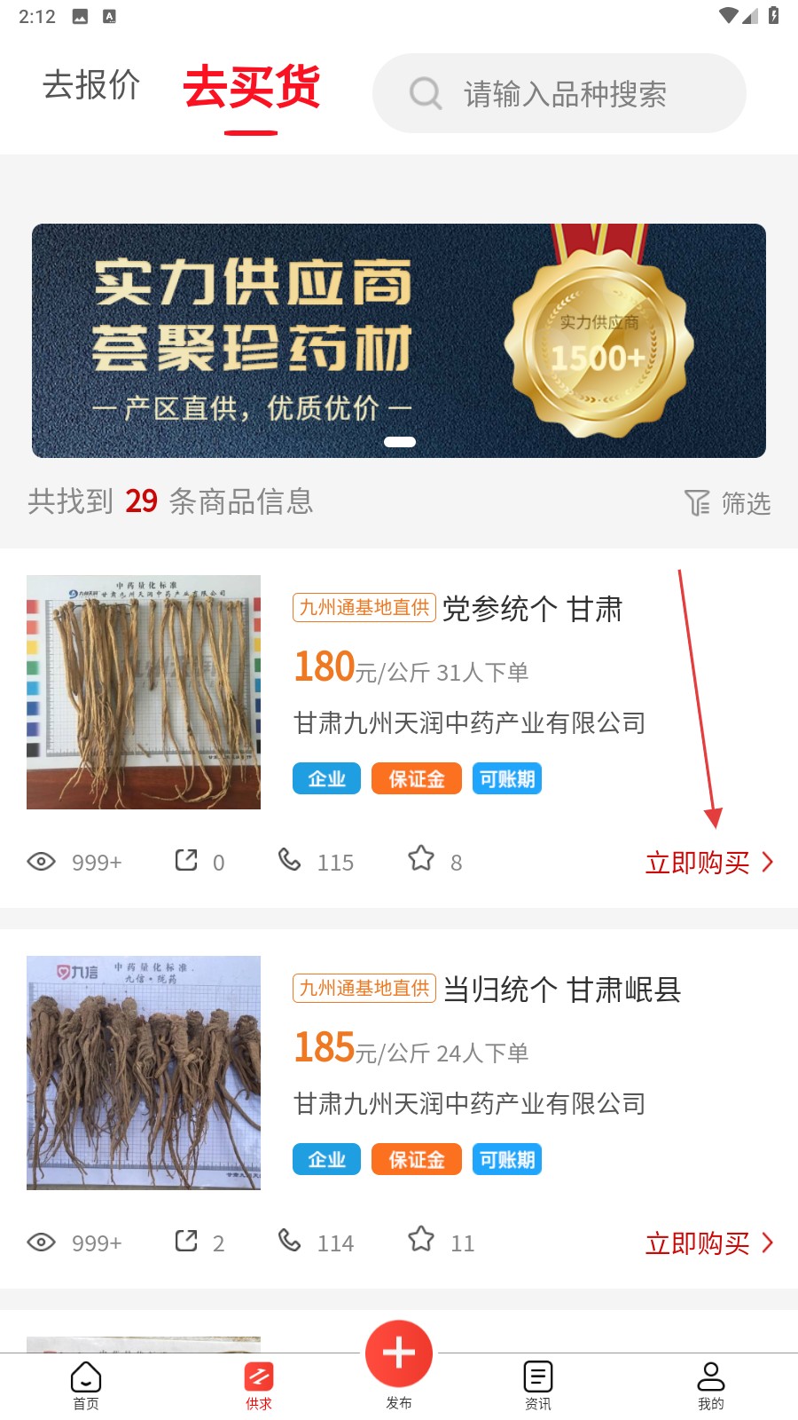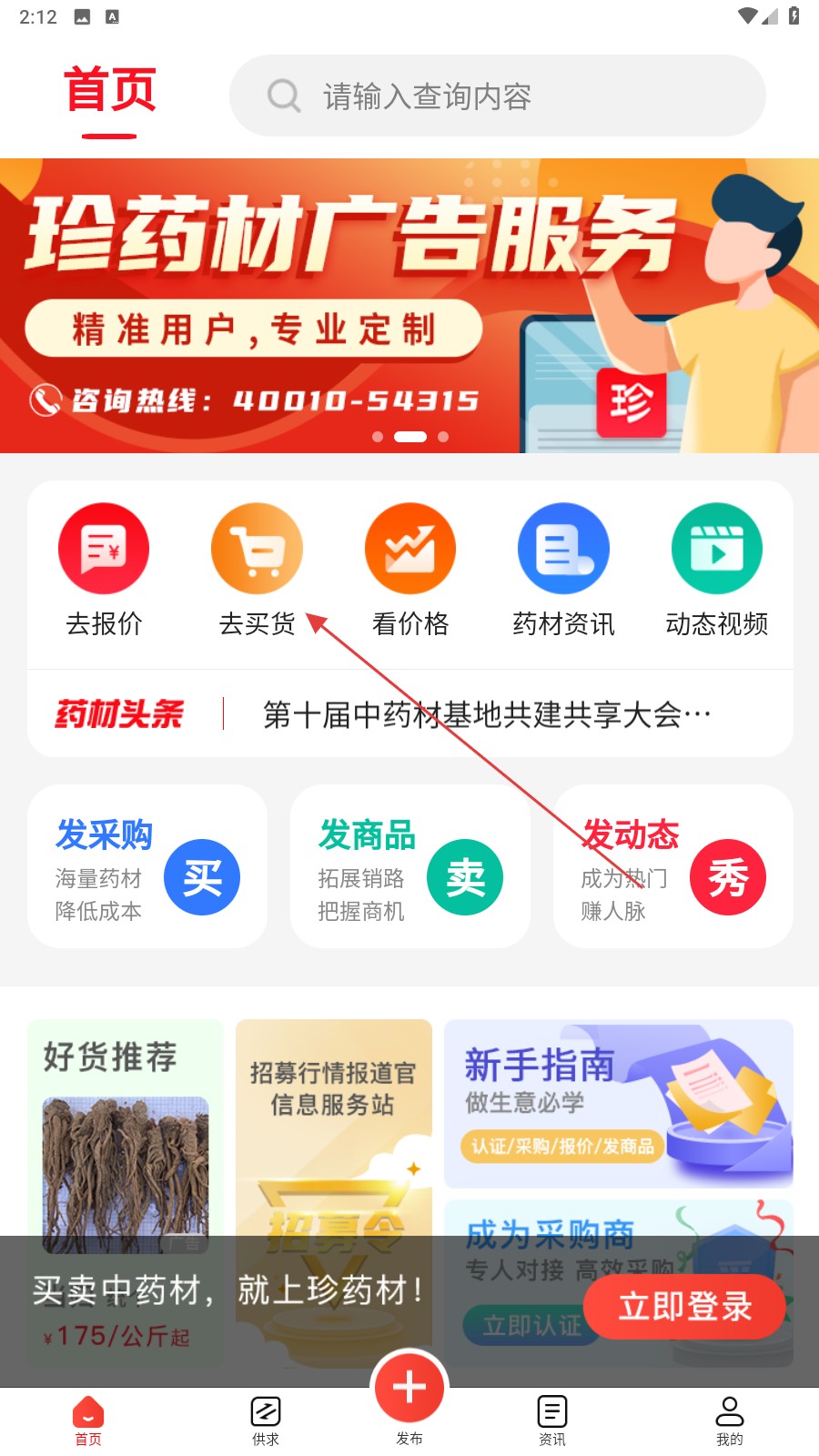 1、点击【去买货】,可浏览各类药材商品,挑选心仪货物。