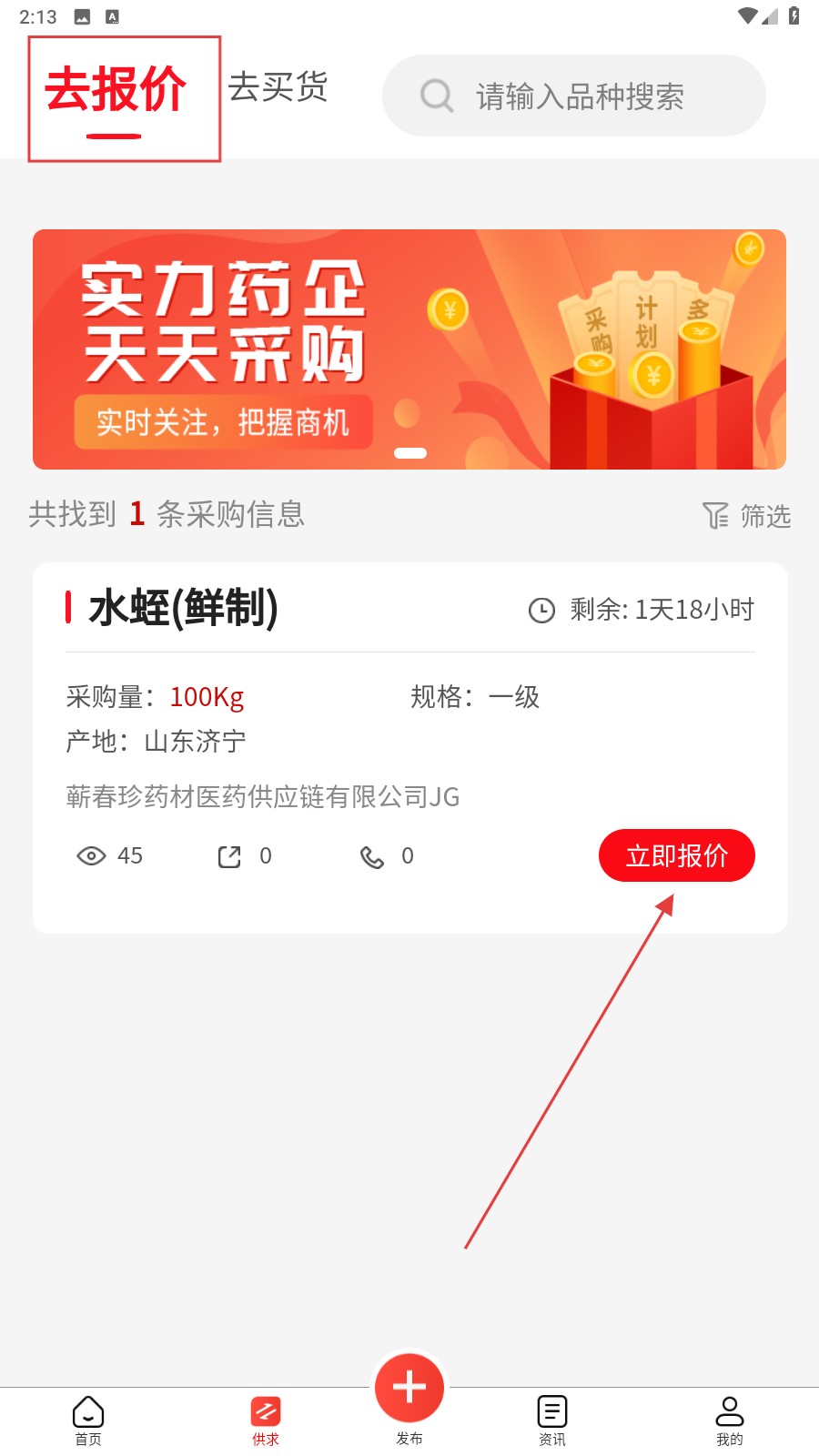 4、点击【去报价】,可查看采购信息,点击【立即报价】参与报价。