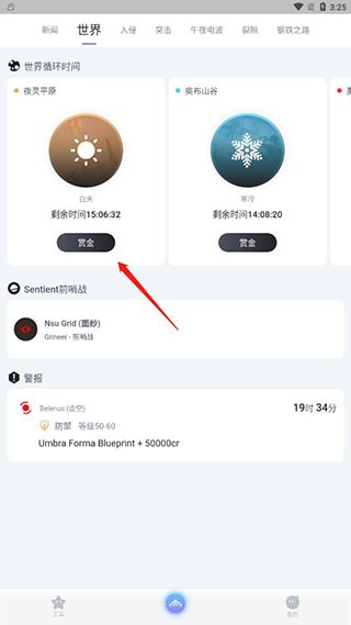3、在【世界】页面,点击【赏金】参与相关游戏活动。
