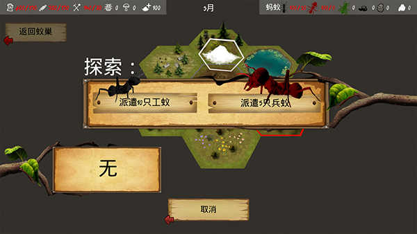 5、搜索每个区域点击区域并选择要派遣的蚂蚁。