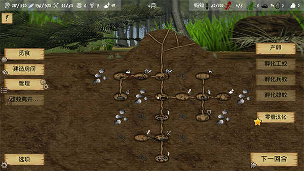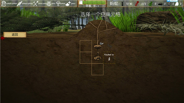 玩家需要从最初的几只工蚁开始,逐步孵化、扩建,形成一个多层结构的庞大蚁群。