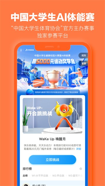 2、云动会:AI智能科技,科学锻炼,记录运动数据,各地高校联动,打卡健身计时赛,在家也能随时pk,无时无刻燃烧竞技之魂,体验云上比赛的快感。