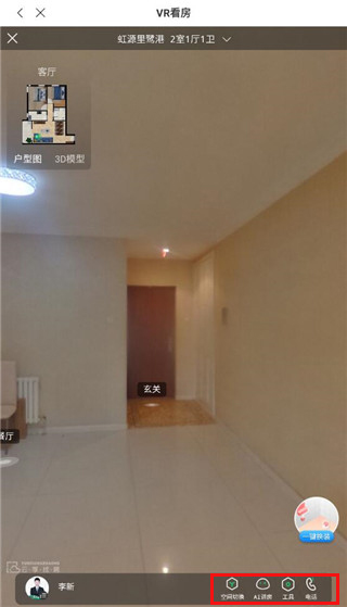 2、选择房子进入,点击上方的区域可以进入vr看房,看完之后可以选择在线聊天或是电话资讯