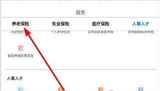 1、在内蒙古人社的服务界面,点击“养老保险”。