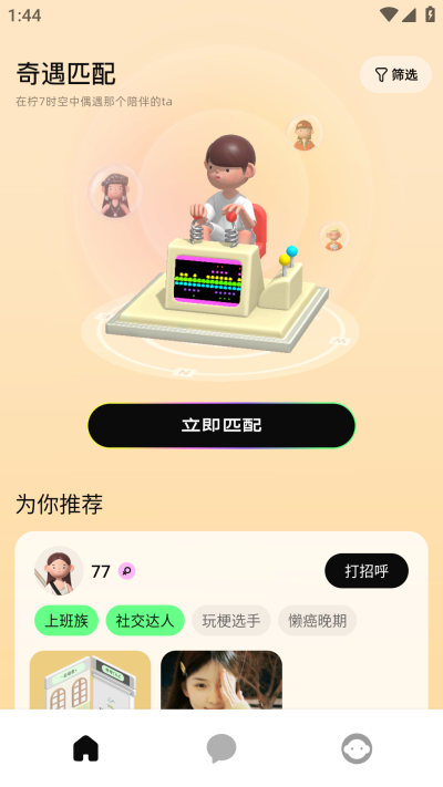 柠7是一款很符合现在年轻人喜好的聊天交友工具,用户在这里可以创建一个虚拟角色,软件中用户注册之后,可以填写自己的性别、兴趣爱好等内容,软件会根据用户的填写来为你推荐与你圈子相同的伙伴,你们可以在这个app中自由的聊天沟通,主页中你可以发布你的日常动态哦!