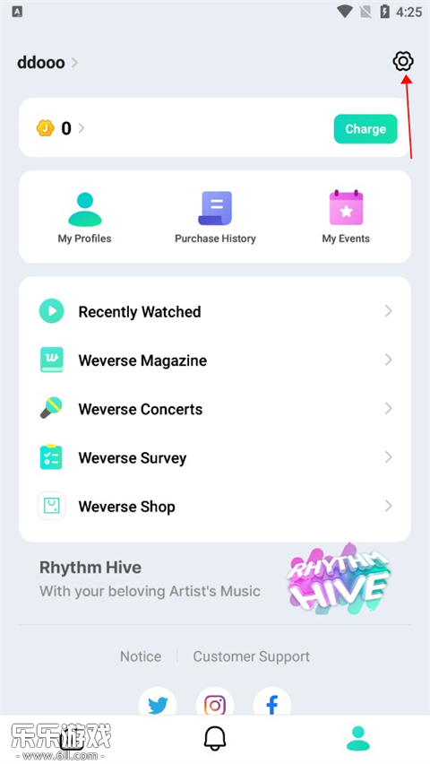 1、打开6ll下载的weverse软件。点击右下角我的,然后点击右上角的设置