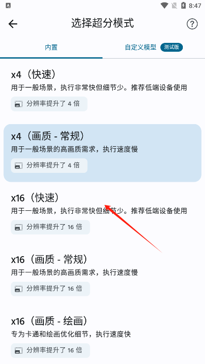 3.你可以x4(快速)、x4(画质-常规)、x16(快速)、x16(画质-常规)、x16(画质-绘画)中自由切换。