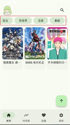 1、推荐栏会推荐一些人气动漫,点击上方标签可以对动漫进行筛选。